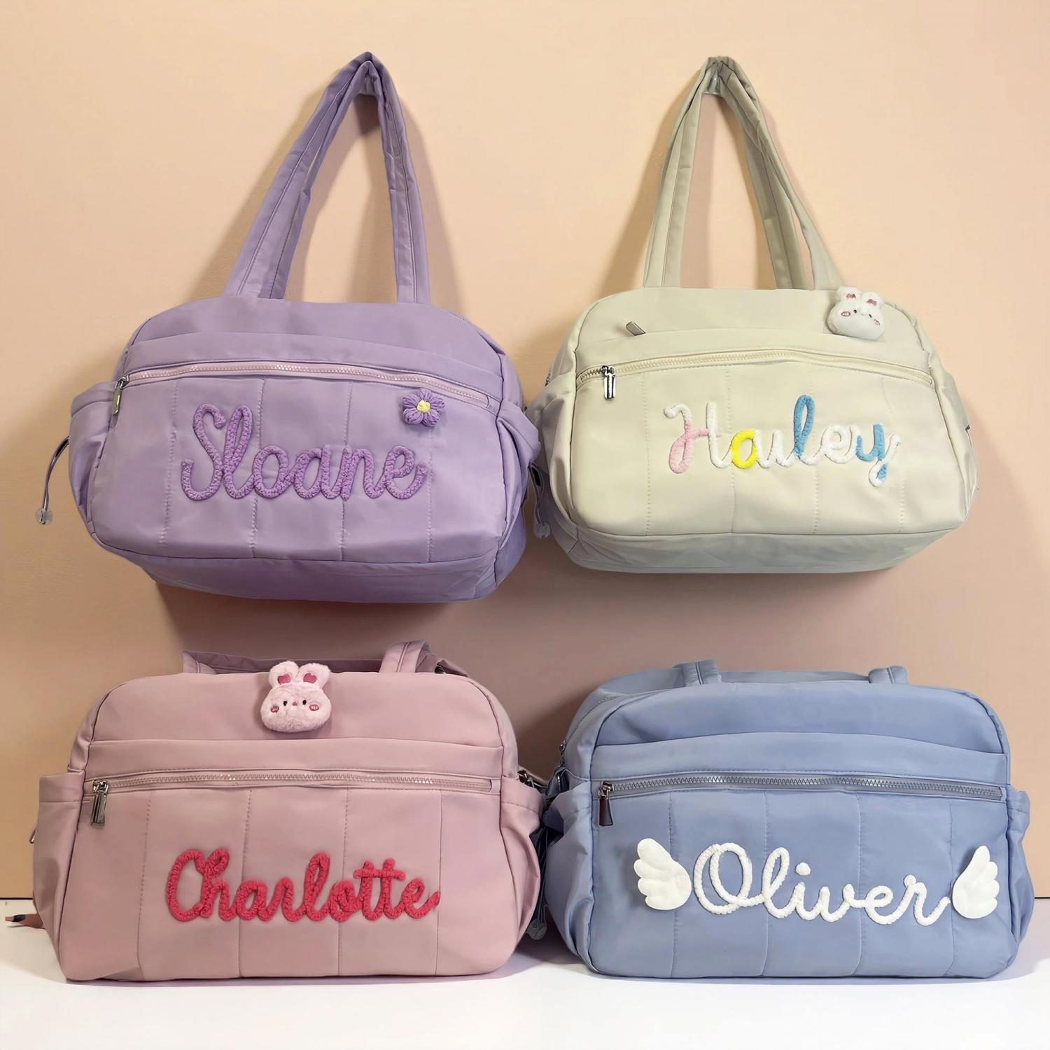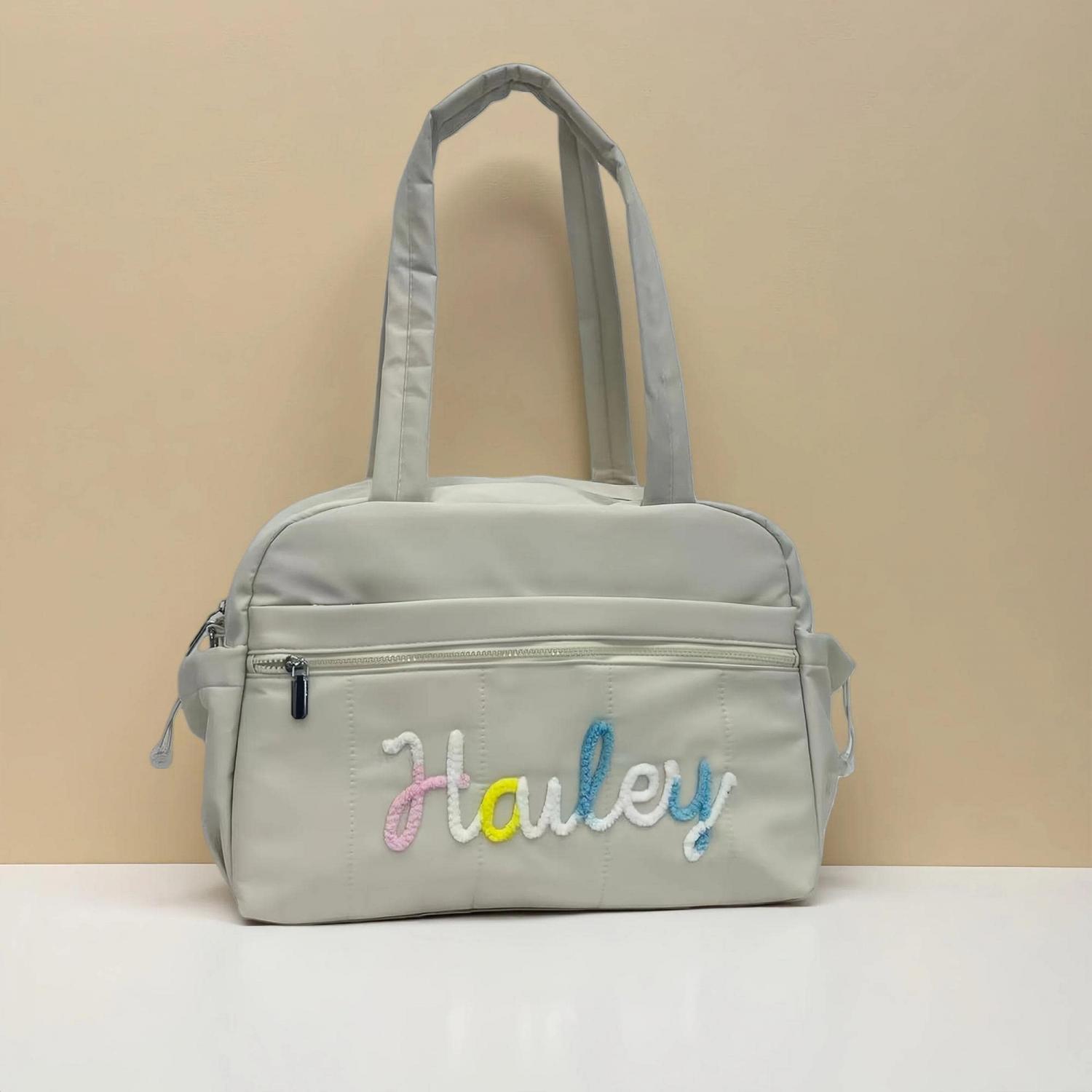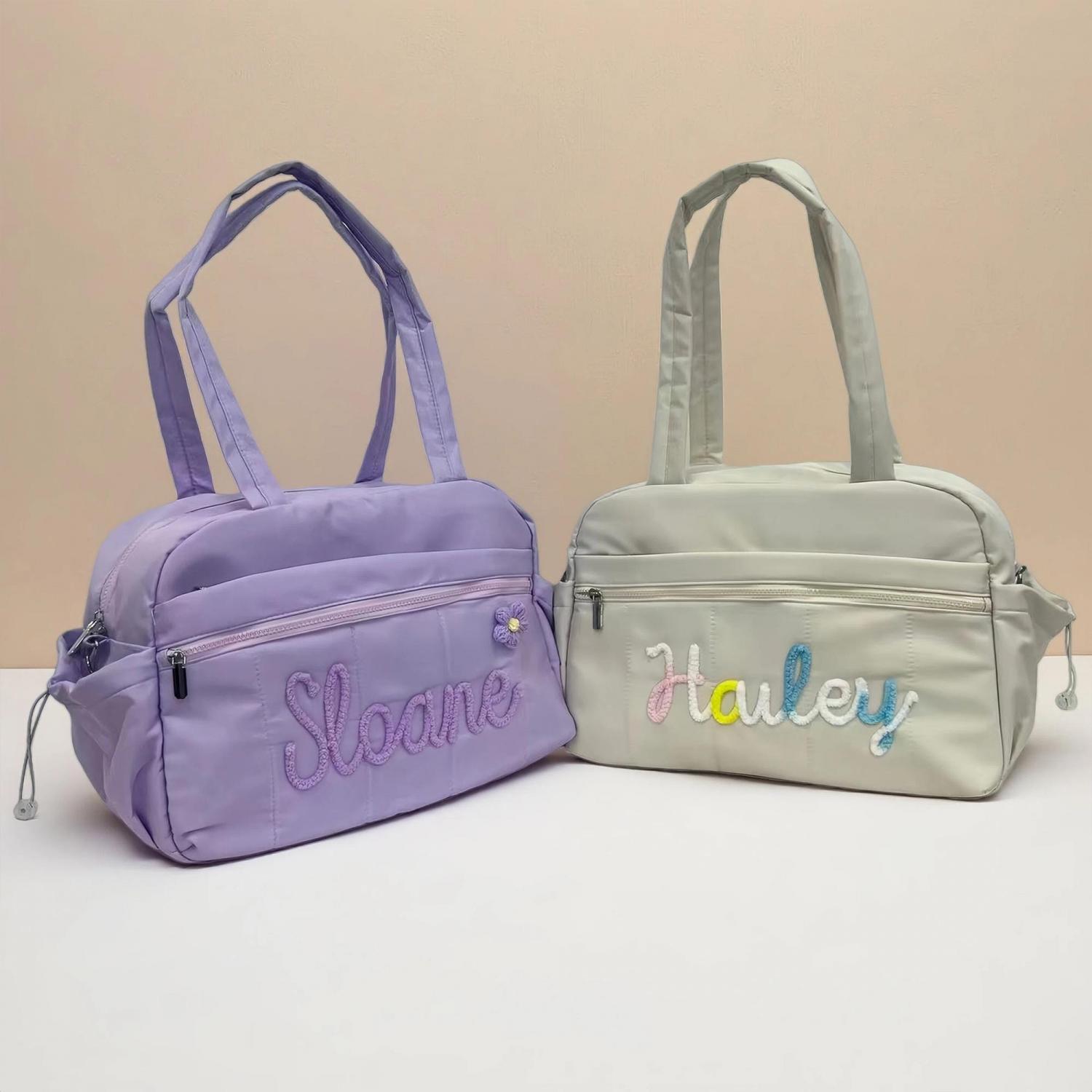 Personalized Chenille Yarn Letter Duffel Bag – Trendy and durable, featuring soft chenille yarn letter for a custom look. Perfect for travel, dance, gym, or weekend getaways.