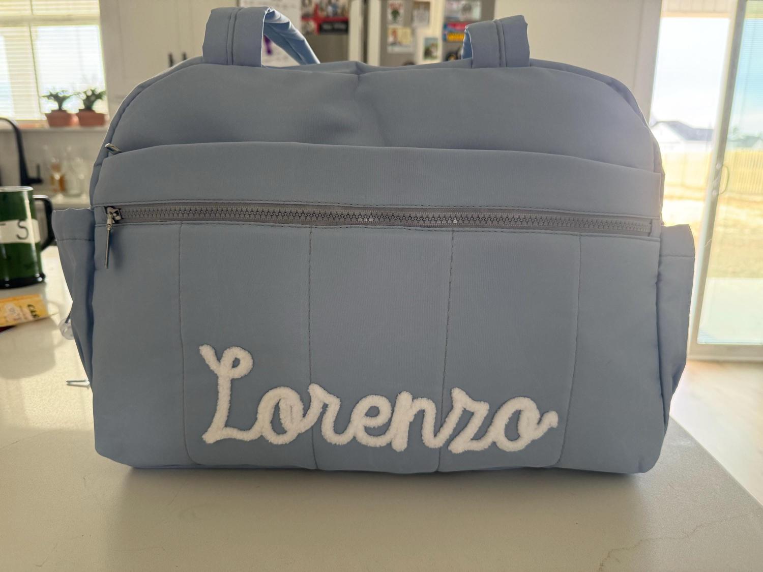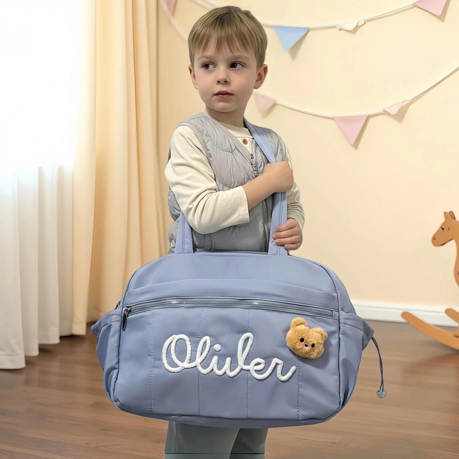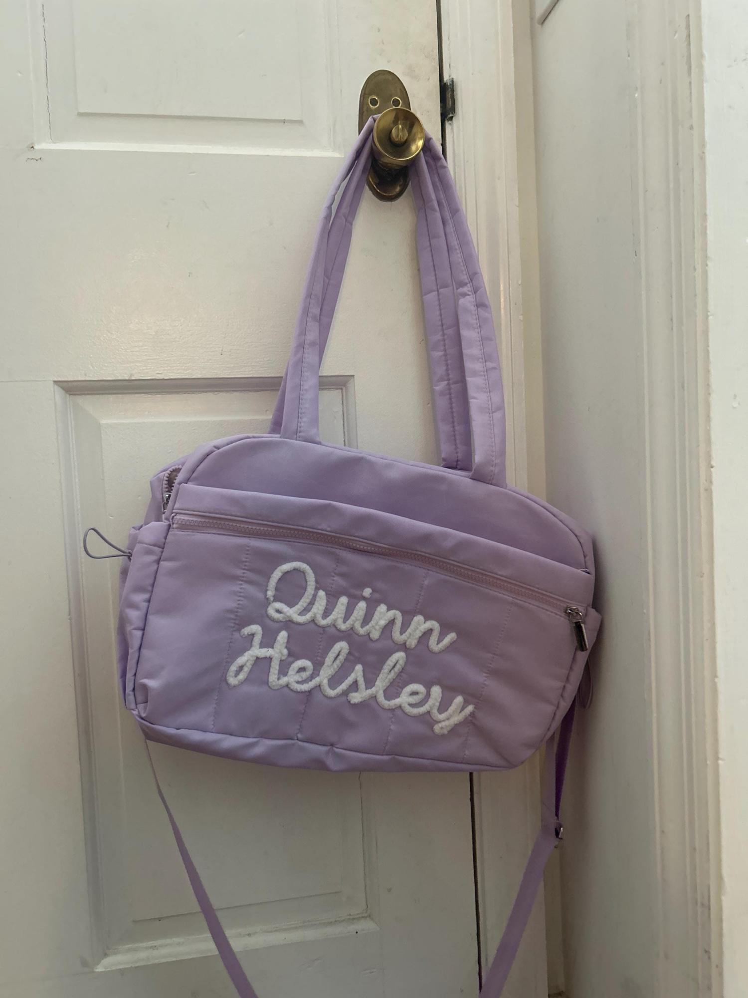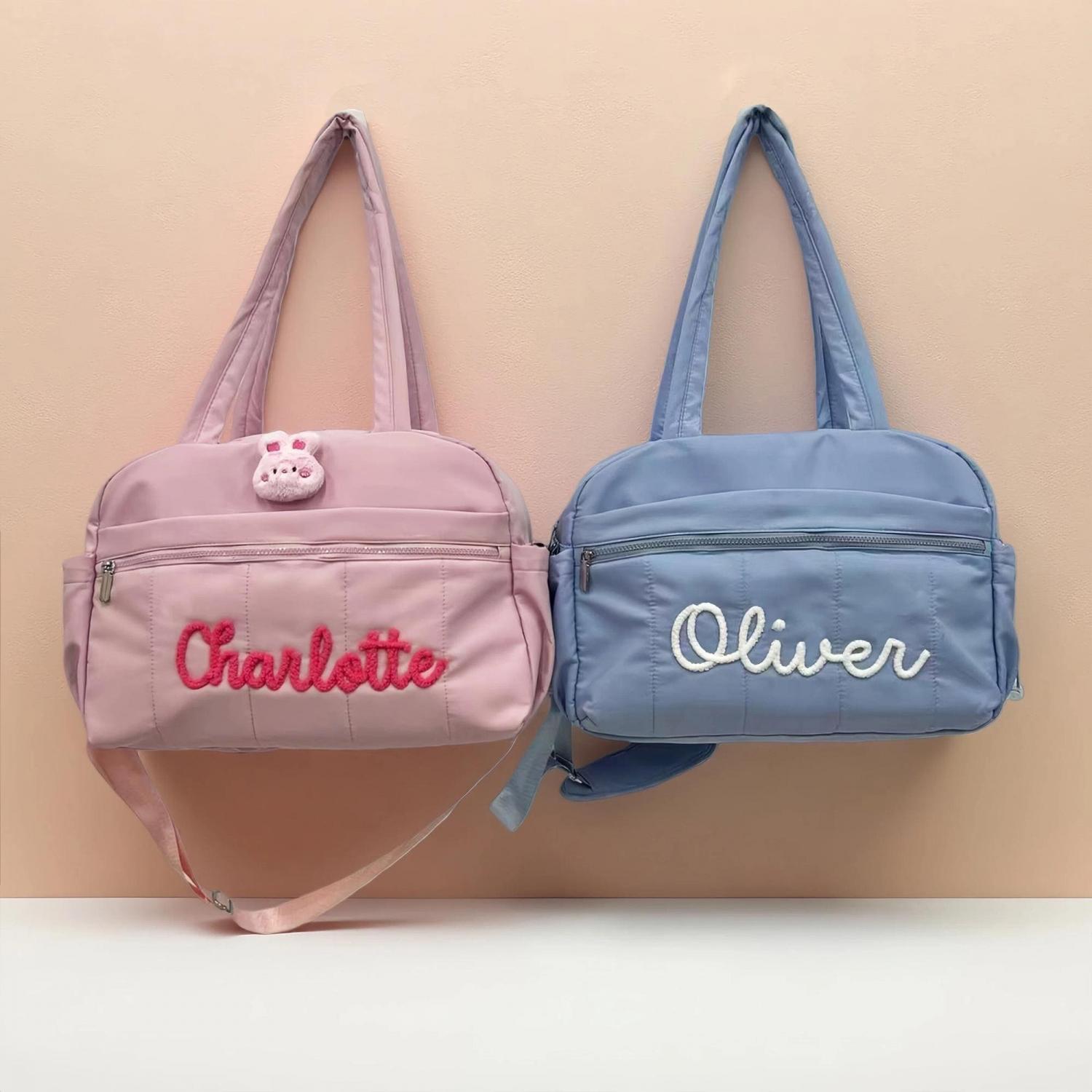 Personalized Chenille Yarn Letter Duffel Bag – Trendy and durable, featuring soft chenille yarn letter for a custom look. Perfect for travel, dance, gym, or weekend getaways.